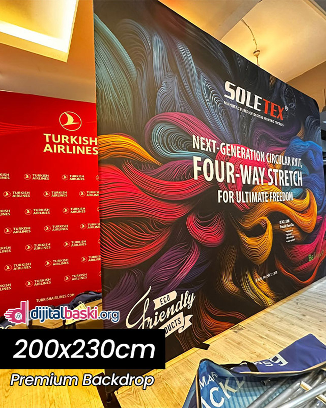 Geniş alanlar ve büyük organizasyonlar için tasarlanmış olan düz tekstil backdrop standı, etkinliklerinize profesyonel bir dokunuş katar. Dayanıklı, hafif ve ergonomik yapısı sayesinde kolay taşınabilir ve hızlı bir şekilde kurulum yapılabilir.